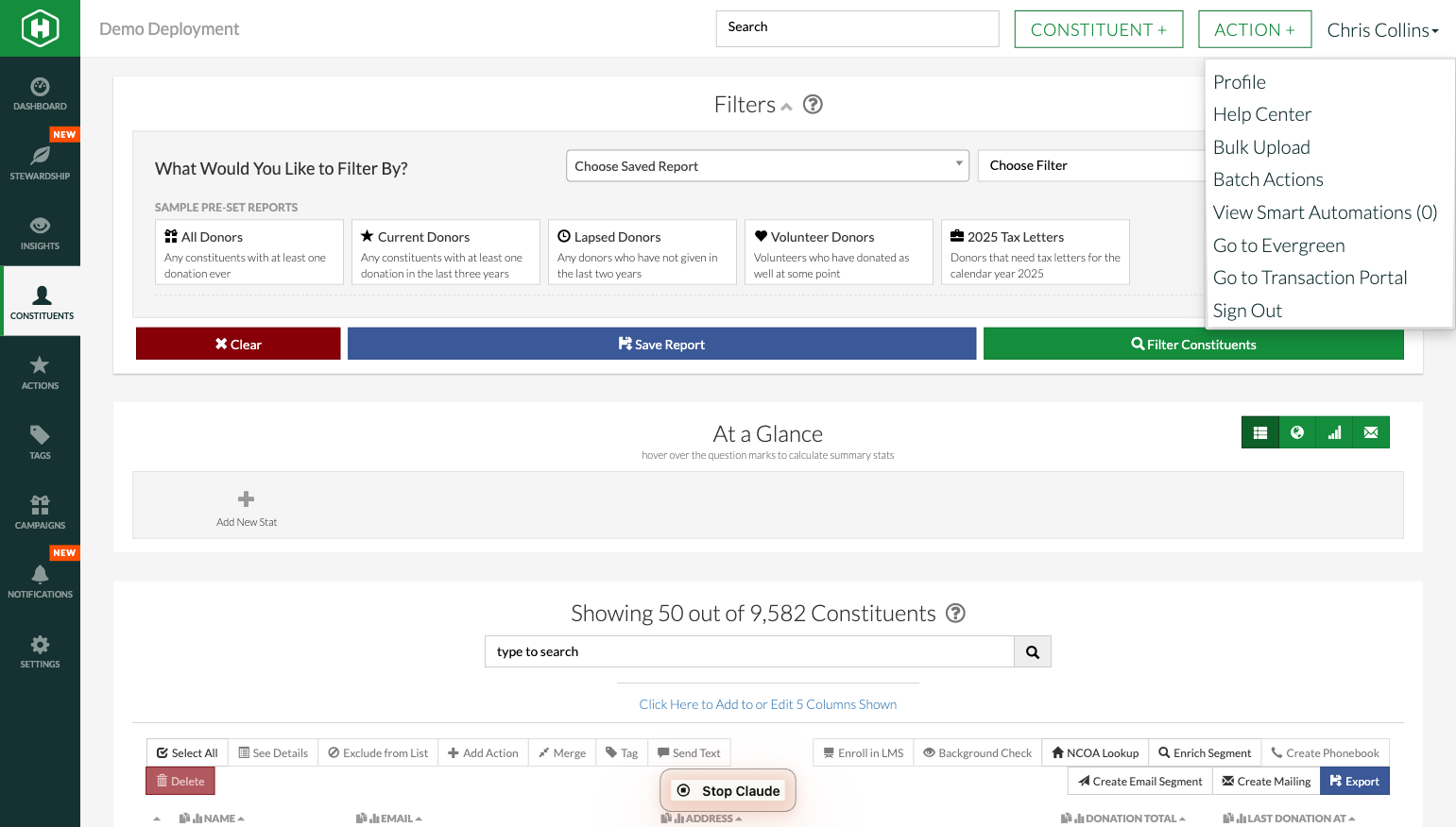 The Bulk Uploader in Humanitru allows you to update large groups of constituent records at once by uploading a CSV spreadsheet. Instead of editing records one by one, you can prepare a list of constituents and apply changes — such as adding a tag — to hundreds or thousands of records in a single upload.